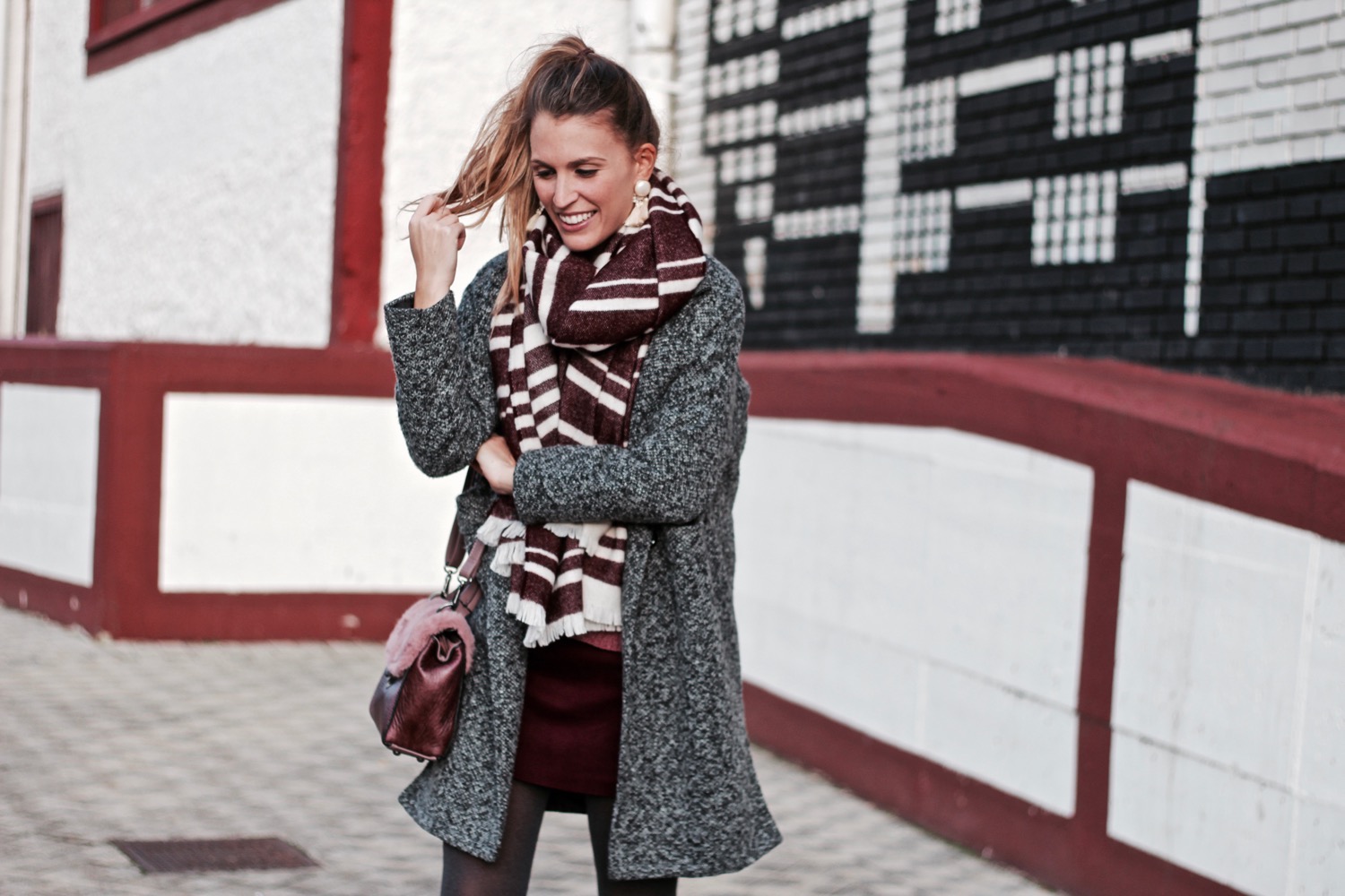Son perfectas para llevar en nuestro día a día con unos vaqueros, sin embargo esta vez opté por combinarlas con vestido, maxibudanda y abrigo jaspeado para un look más de domingo. Me ha costado sacar las medias del armario ¡pero al fin lo he hecho! La tendencia calcetín viene pisando con fuerza esta temporada, por ello añadí estos en tono burdeos que además hacen que la bota se adapte mejor a mi minitobillo.